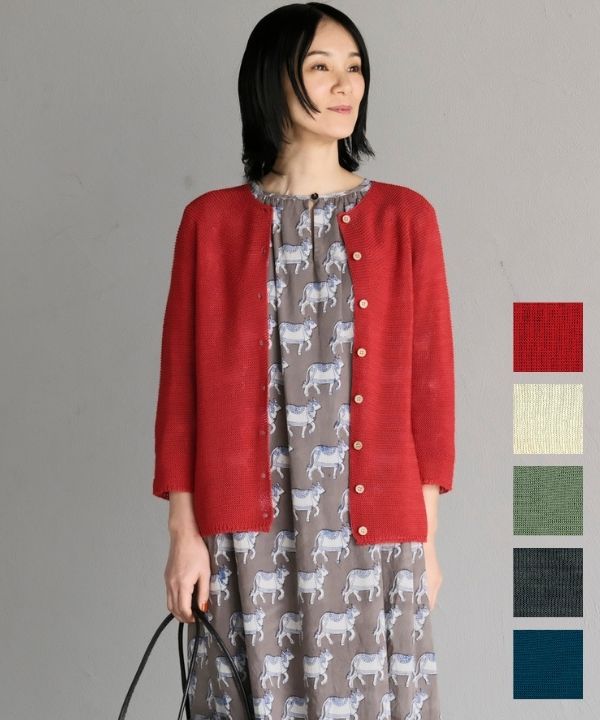 麻タッチエアリードットニットカーディガン 26S084【3月頃入荷予定】