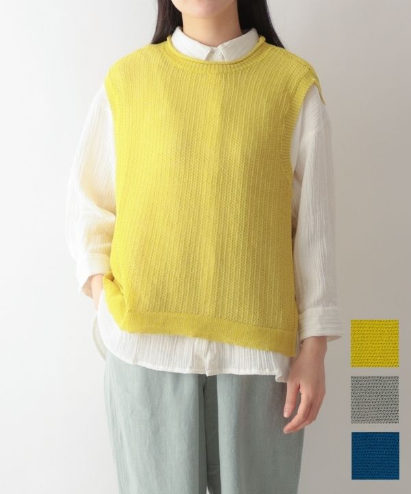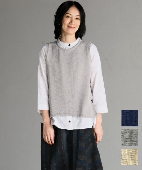 麻タッチエアリードットニットベスト 26S083【3月頃入荷予定】