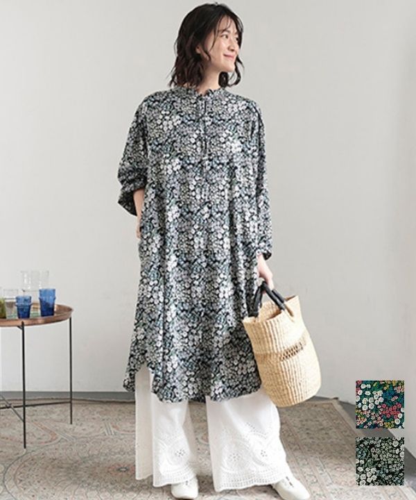 オーガニックコットン古き良き花の芽プリントシャツワンピース 26S450【4月頃入荷予定】