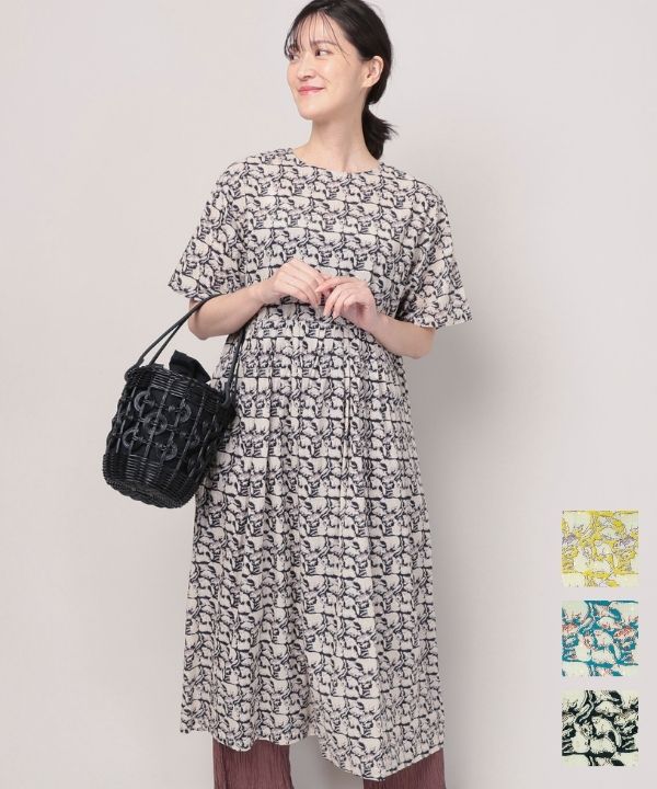 花々のブロックプリントコットンリネン2wayワンピース 26S034【2月頃入荷予定】