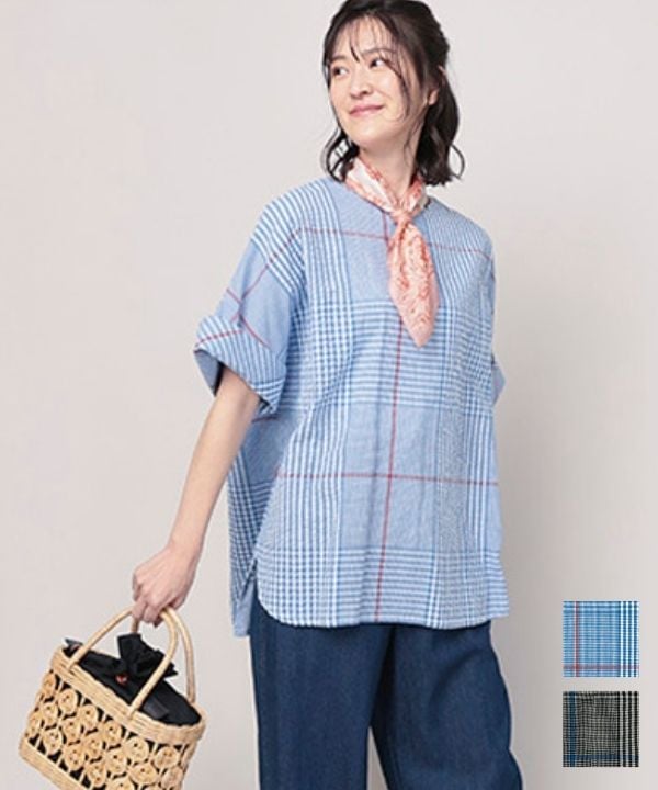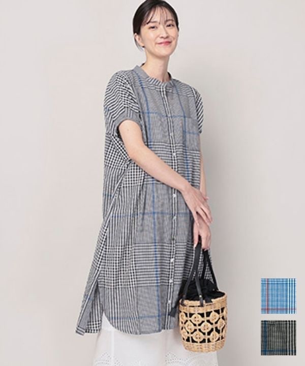ラインを効かせたチェックコットンサッカーチュニック 26S046【4月頃入荷予定】