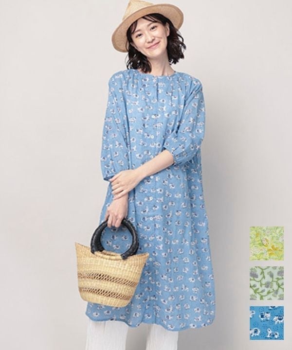 ボタニカルプリントコットンダブルガーゼ前開ワンピース 25W002