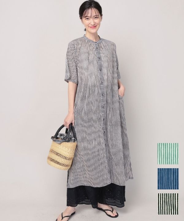 ストライププリントコットンガーゼ前開ワンピース 26S069【5月頃入荷予定】