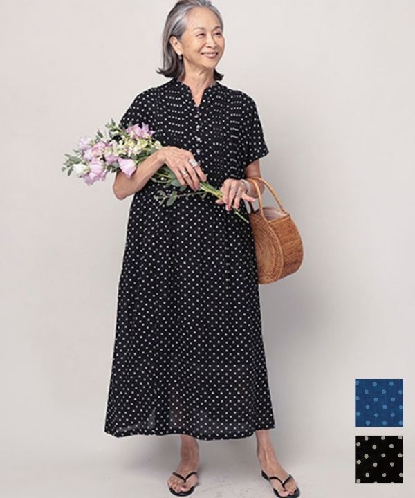たっぷりピンタックの楊柳ドットコットンワンピース 26S110【5月頃入荷予定】