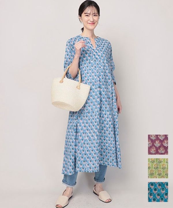 南仏の風をまとう更紗プリントコットンワンピース 26S107【5月頃入荷予定】