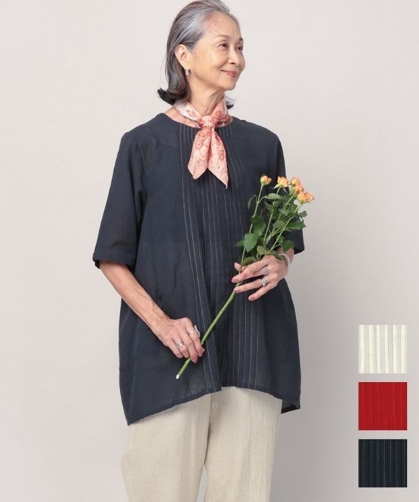 爽やかピンストライプ・カディシャツブラウス 26S439【4月頃入荷予定】