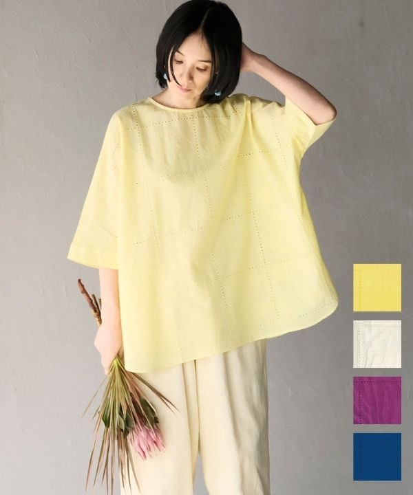 四角のなかのタイルのようなシフリー刺繍ルーズチュニック 26S446【2月頃入荷予定】