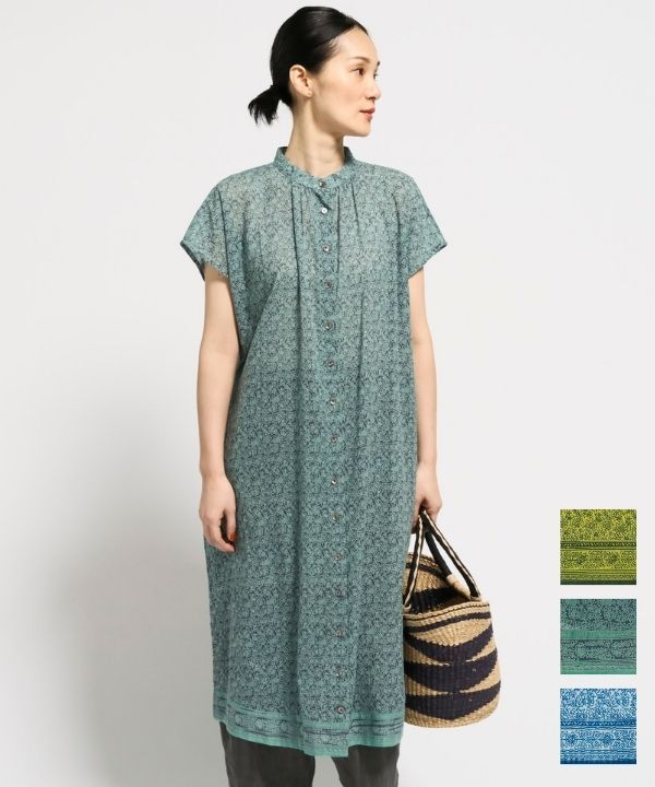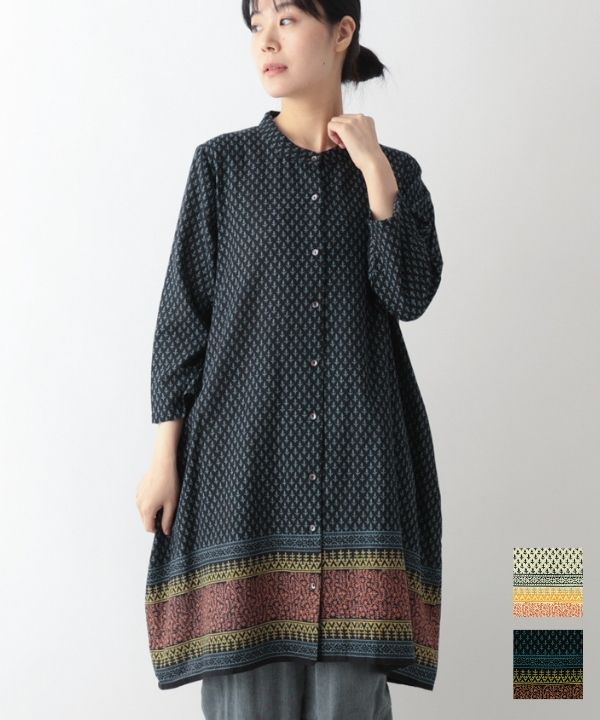 インドの更紗バイカラープリントギャザーシャツワンピース 26S491【5月頃入荷予定】