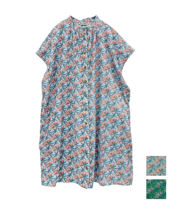 ヤシの木の葉っぱプリント・サッカーコットンギャザーシャツチュニック 26S463【4月頃入荷予定】