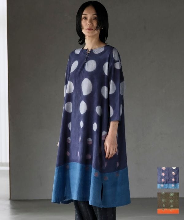 スラブストーンウォッシュ&小さいポルカドットコクーンワンピース 25W430
