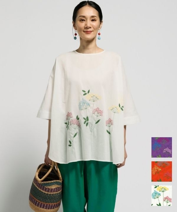 Tシャツのように着られる刺繍コットンチュニック 26S099【5月頃入荷予定】