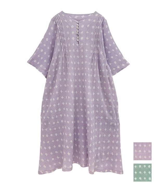 おぼろげシャボン玉ドット・プリントクレープコットンワンピース 26S443【4月頃入荷予定】