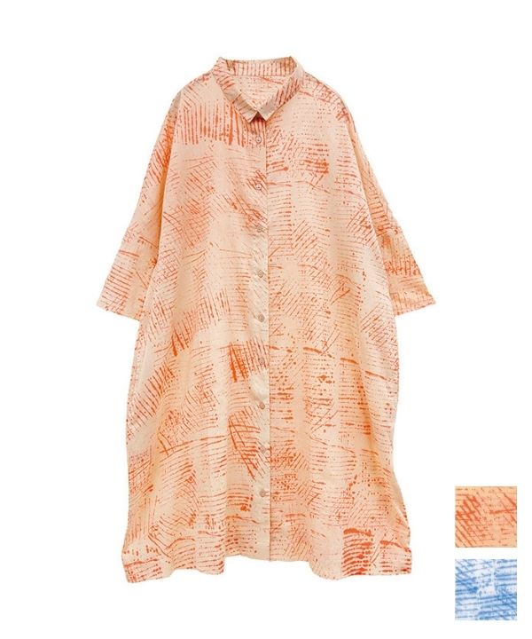 板締めタイダイ・ハンドプリントシャツワンピース 26S474【5月頃入荷予定】