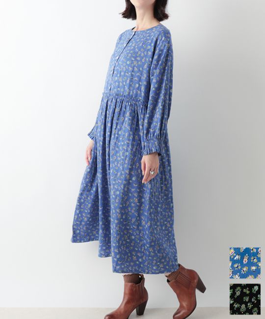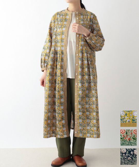 フローラルブロックプリントコットン前開ワンピース 25W022