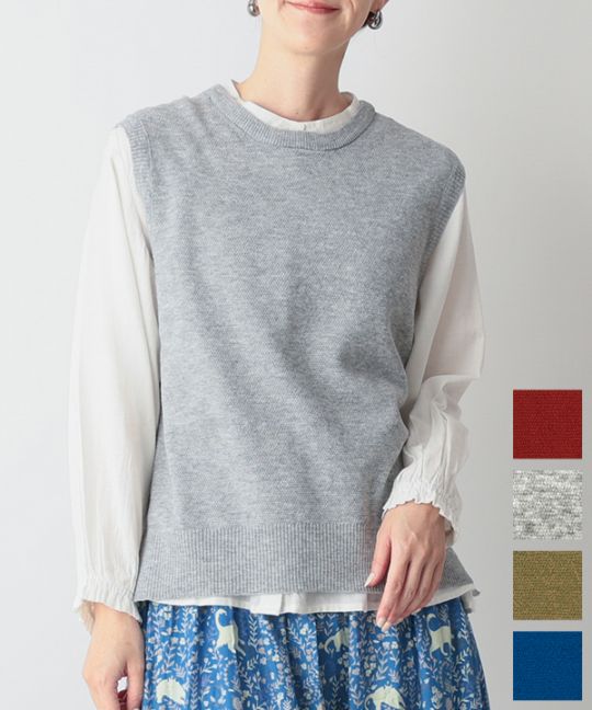 かのこ編み再生ポリエステルニット2wayベスト 25W039
