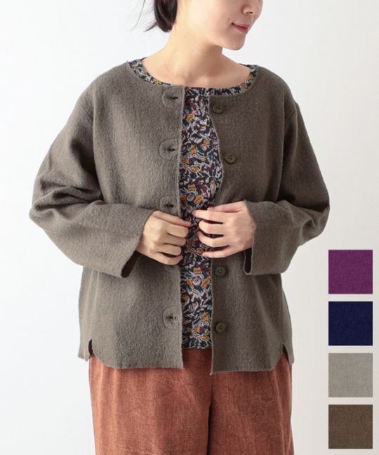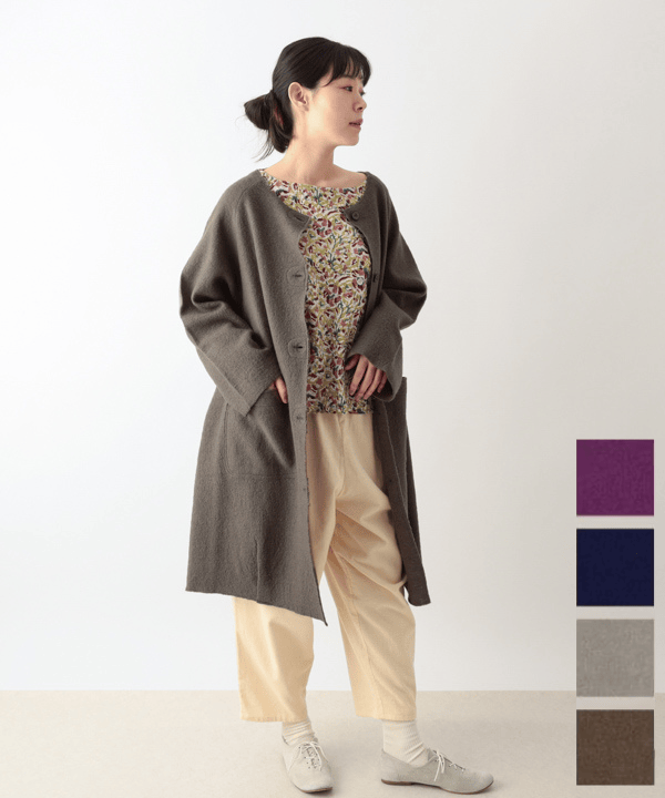 IROIROブロックプリント起毛コットン前開ワンピース 25W043