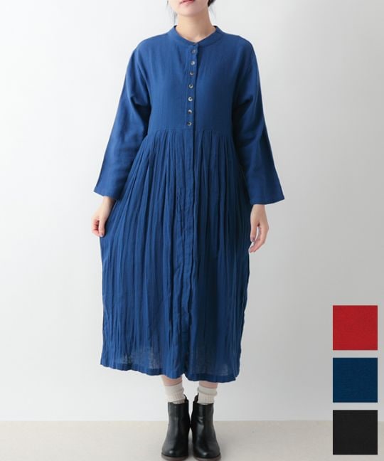 起毛コットンツイルクリンクル2way 前開きワンピース 25W047