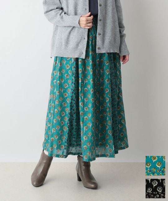 コーデュロイとお花ブロックプリント起毛コットンプリントワンピース 25W451