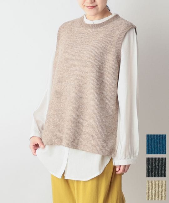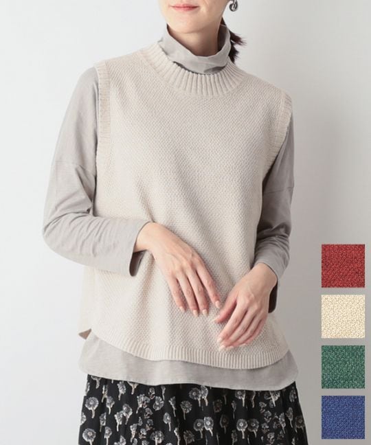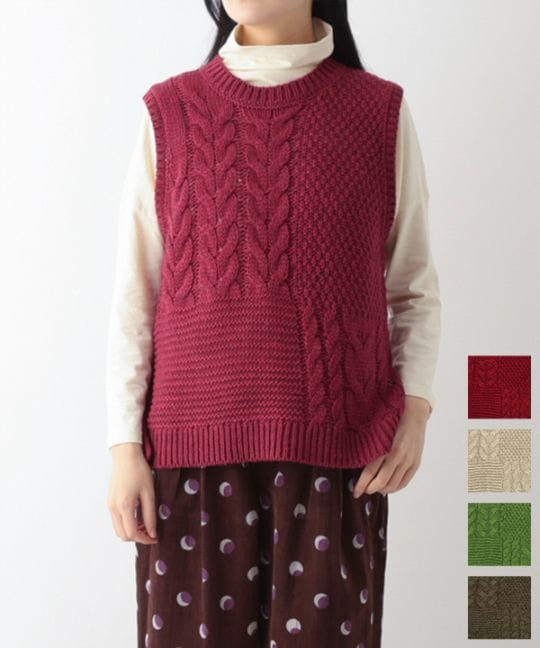 かのこ編み再生ポリエステルニット2wayベスト 25W039