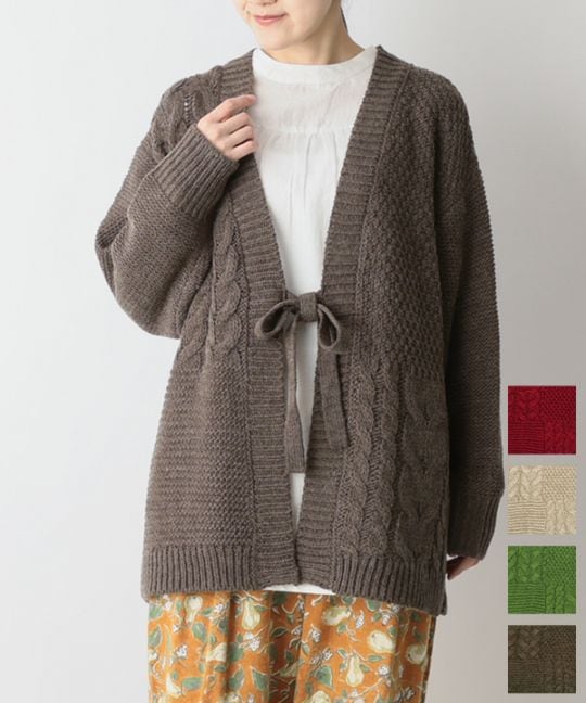 かのこ編み再生ポリエステルニット2wayカーディガン 25W040