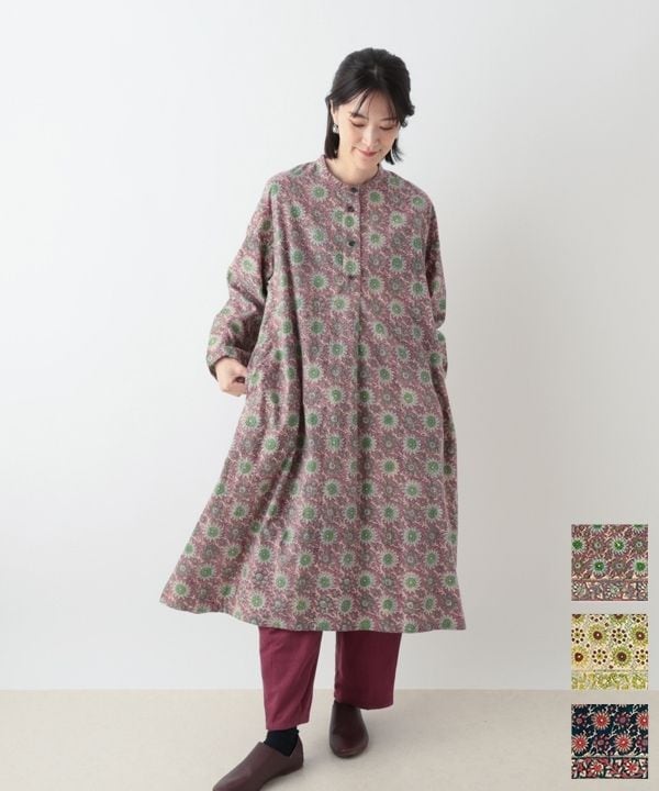 IROIROブロックプリント起毛コットン前開ワンピース 25W043
