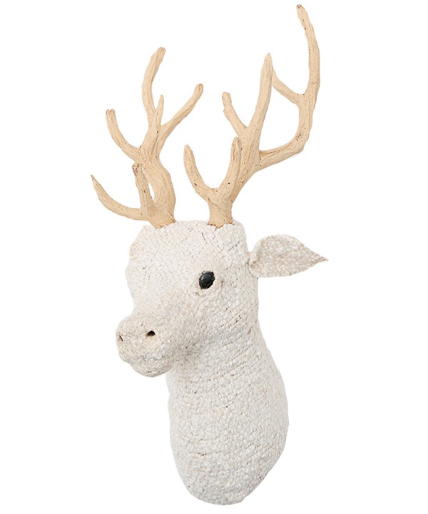 ファブリックアニマル シカ 壁掛けオブジェ (ホワイトブークレ) M68-2436WH