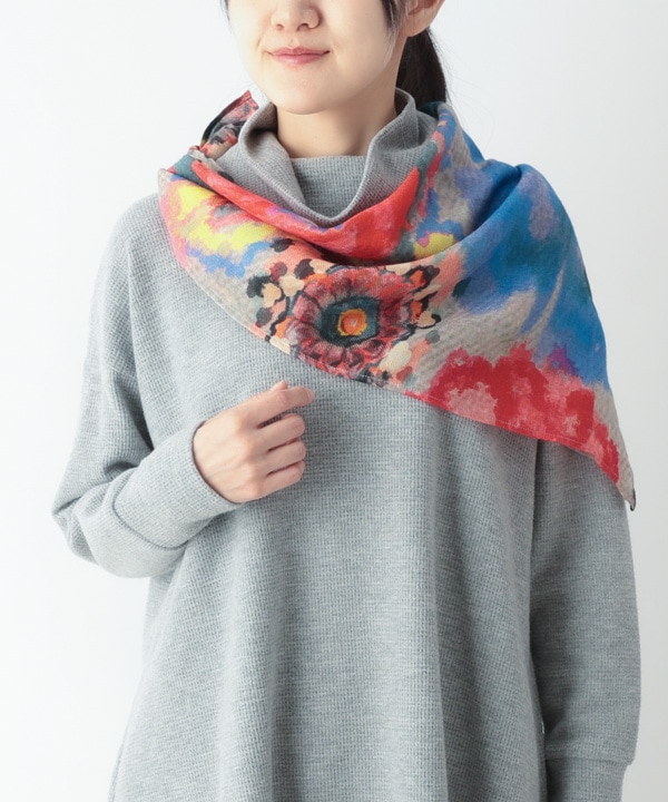 ウールシルク パッチワーク風プリントスカーフ B25W012