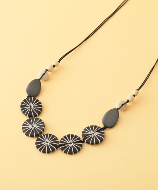 ウッド ツブツブフラワーネックレス A25WPN075BK