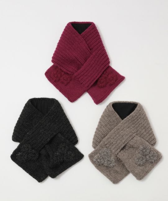 ウール シンプルフラワー ミニマフラー H25W296